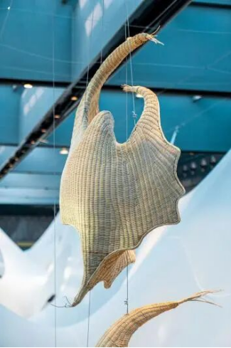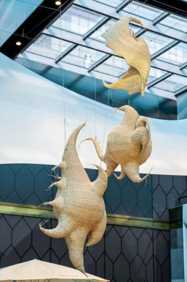 作品阐述:以藤的呼吸重塑古生物的熵寂,15720根藤条依斐波那契螺旋生长算法交织,在螺腔顶部收束为翼龙翅骨锐角,模拟古生物从海洋漩涡向天空进化的能量轨迹。