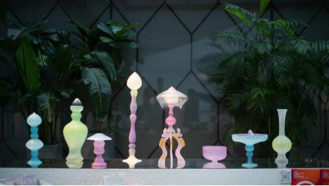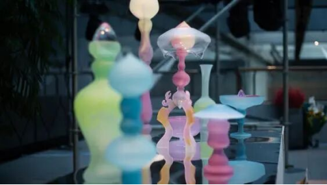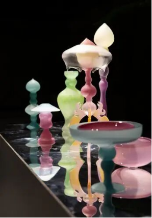 作品阐述:本组花器以艺术观赏性为核心,采用流畅的对称造型设计,将传统器皿的轮廓进行现代化演绎。主题上选取了夸父逐日的传说,在色彩上运用传统配色,并通过细腻的喷砂工艺打造出朦胧的磨砂质感、呈现出含蓄典雅的东方美学意境。设计融会古今元素,在保留传统韵味的同时,既能展现文化底蕴,又能自然融入当代生活。“所有向桃山行去的足迹终将成为桃山本身。”