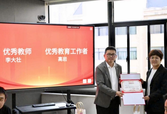 座谈会由系副主任刘谦老师主持。武小川副院长莅临会议指导,工艺美术系全体教师参会。会上,武小川副院长为获得“优秀教师”称号的李大壮老师和“优秀教育工作者”称号的高岩老师颁发了荣誉证书。两位获奖教师结合自身工作实际做了发言,分享从教心得、畅谈育人感悟、讲述与学生相处的温暖点滴,言语间尽是对教育事业的赤诚与热爱。