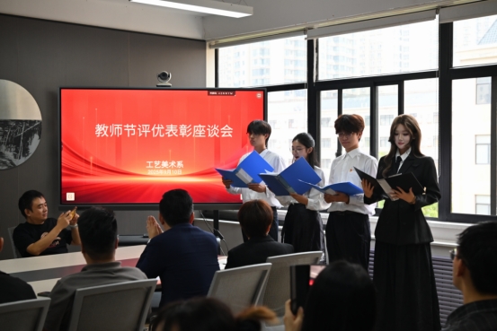 9月10日,工艺美术系组织召开了温馨的教师节表彰座谈会。会议伊始,系学生会的同学们深情朗诵《九月礼赞》,用这首诗向全体老师表达感激之情,字字句句皆发自肺腑,感动了在场的每一位教育工作者。
