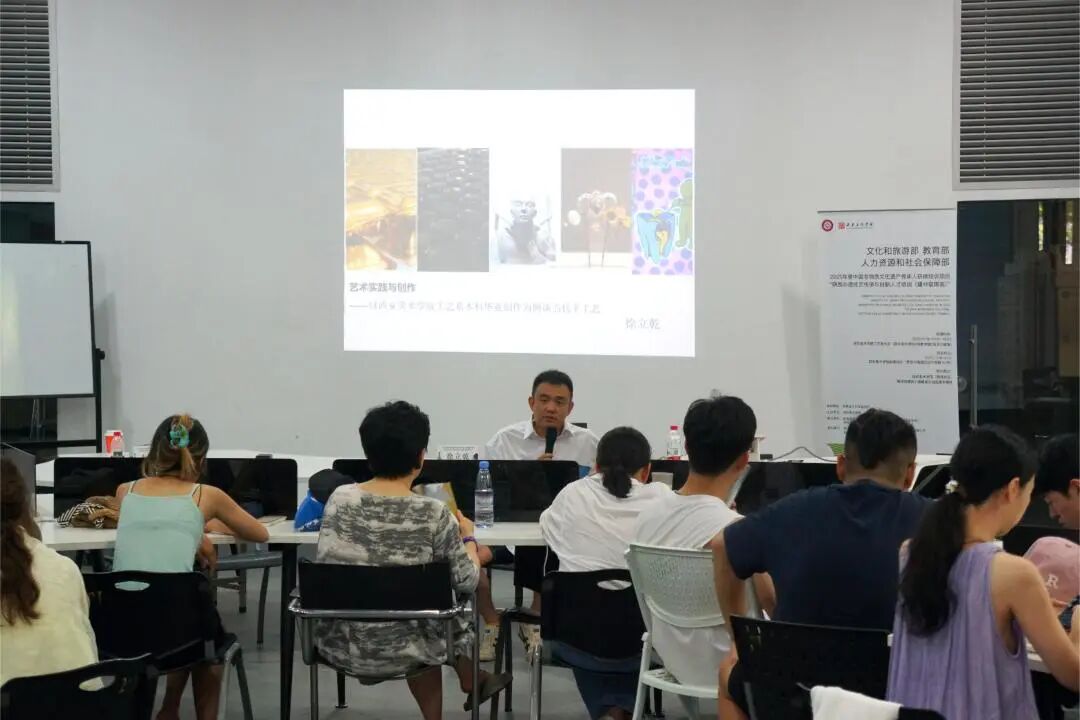 在交流环节,学员们踊跃提问,徐立乾老师结合具体事例详细作答,分享了创作中材料运用与观念表达的实践心得,鼓励学员们关注社会现实与文化传承,在创作中融入问题意识,实现传统与当代的有机结合。