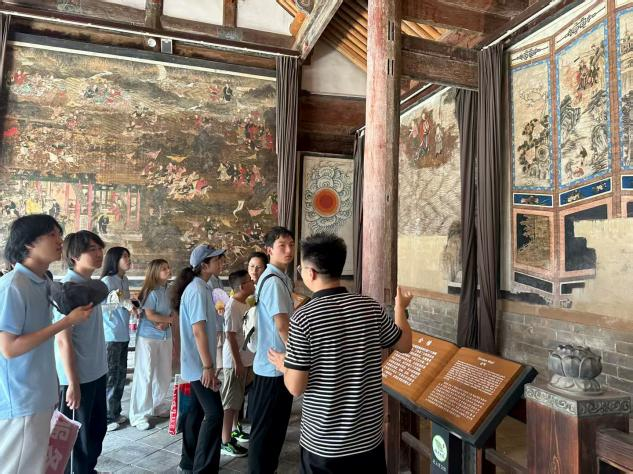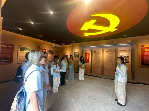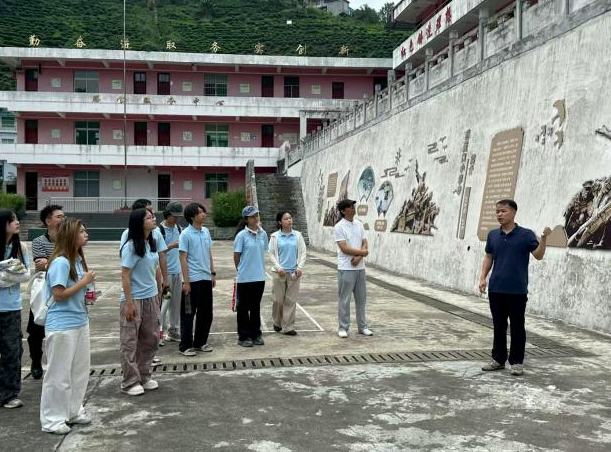图为实践团成员随讲解参观芭蕉口小学党史文化墙。