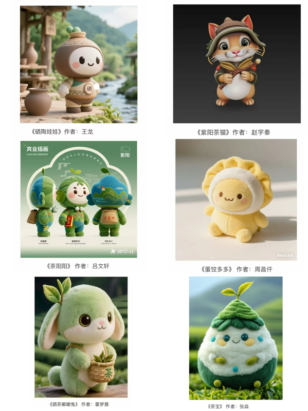 直面地方产业发展瓶颈,前沿科技引入乡村振兴实践。团队深入紫阳产学研基地,敏锐捕捉到企业“自主研发能力薄弱”与“独特IP缺失”的痛点。创新性地运用人工智能(AI)技术,高效地将紫阳的富硒特色、山水风光、历史人文转化为设计灵感源泉,为工厂量身定制了26套融合紫阳地域文化元素的原创IP形象设计方案。这不仅为突破发展瓶颈提供了新思路,更让学子们深刻体会到艺术设计结合科技力量服务实体经济的巨大潜力。AI成为连接紫阳深厚文化与现代消费市场的强力工具,用科技创意赋能乡村特色产业,探索出一条以特色品牌建设激活内生动力的新路径。