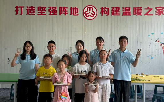 图为实践团成员面向乡村儿童做陶艺浸润课堂活动。