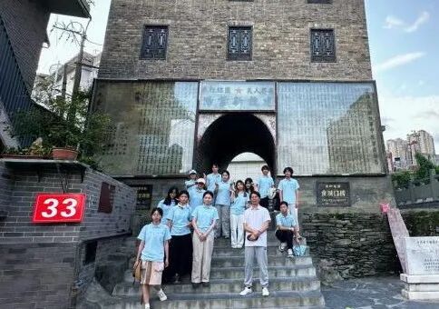 图为实践团成员赴紫阳县党性教育基地东城门参观。