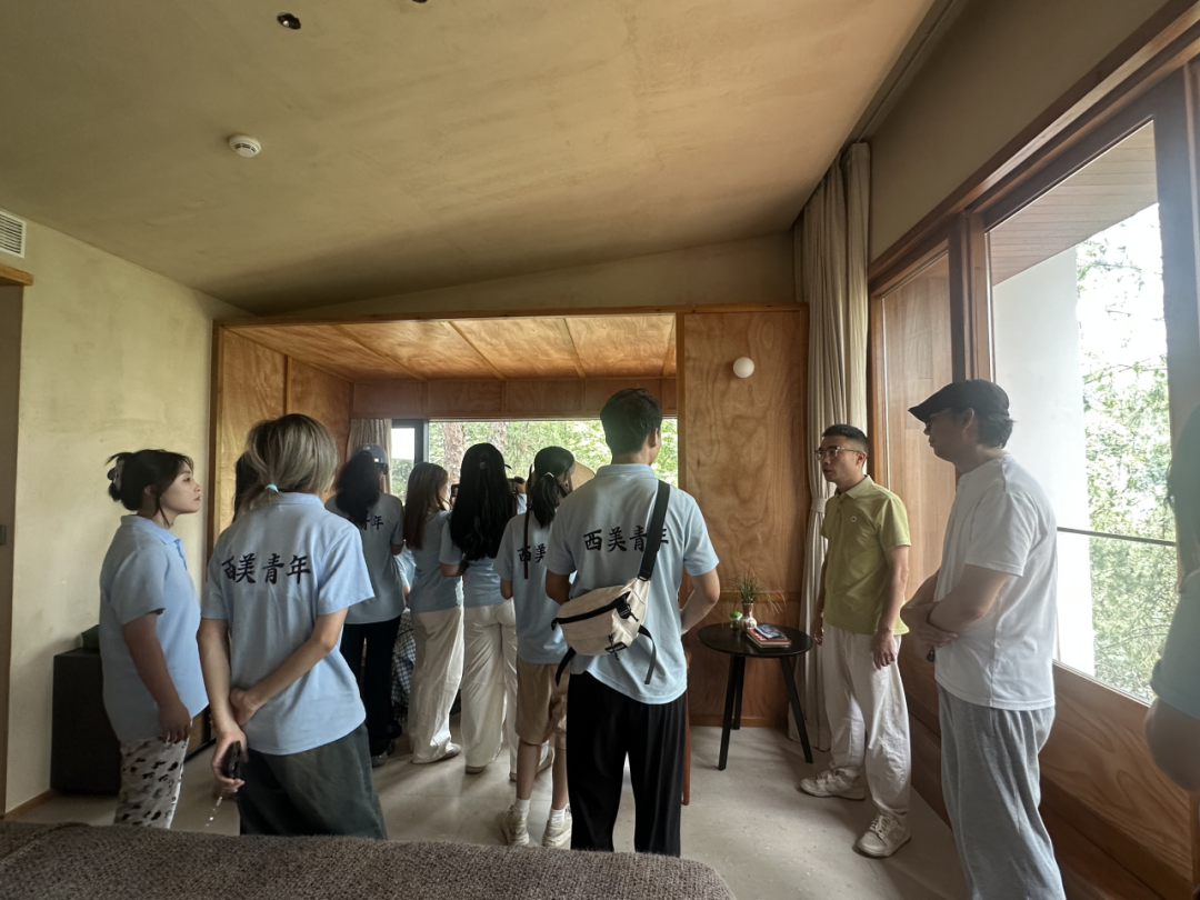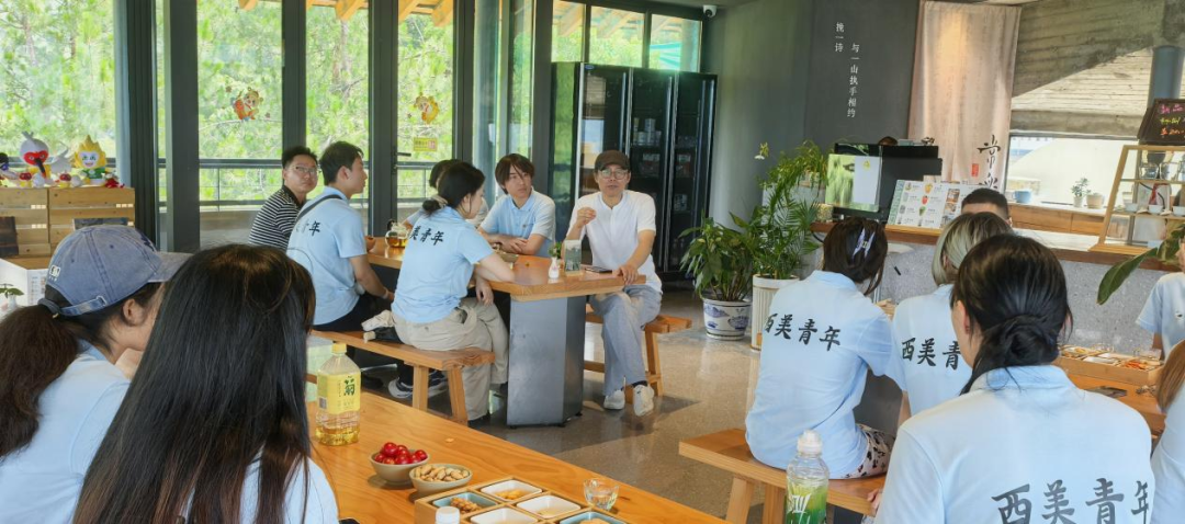 接着,紫阳县文化旅游投资发展有限公司副总经理吴祥平带领团队在半亩茶园调研考察当地茶餐厅与特色民宿。随后,师生暂聚品茶室稍作休整,吴祥平对西美学子寄予厚望,期待大家为紫阳及民宿设计研发独具特色的文创产品,并耐心解答了同学们的疑问。