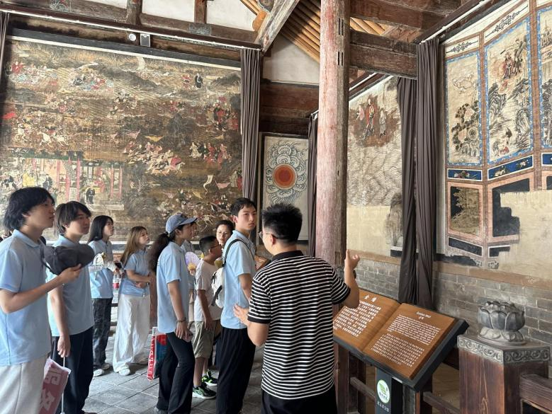 刘训立老师秉持着追根溯源的精神,深究壁画中的细节含义,与李朋深入交流,挖掘其中蕴含的丰富历史。同学们不仅体会到“五省协作”的团结精神、“诚信忠义”的商道精髓、“天人合一”的道家思想,更激发了“刨根问底”的学术热情。