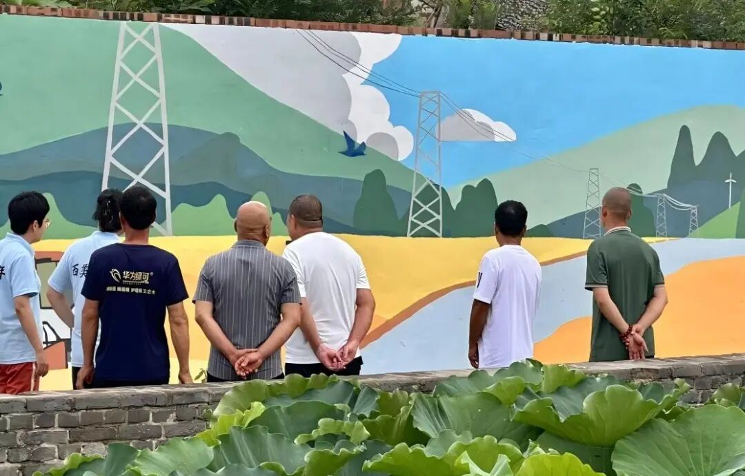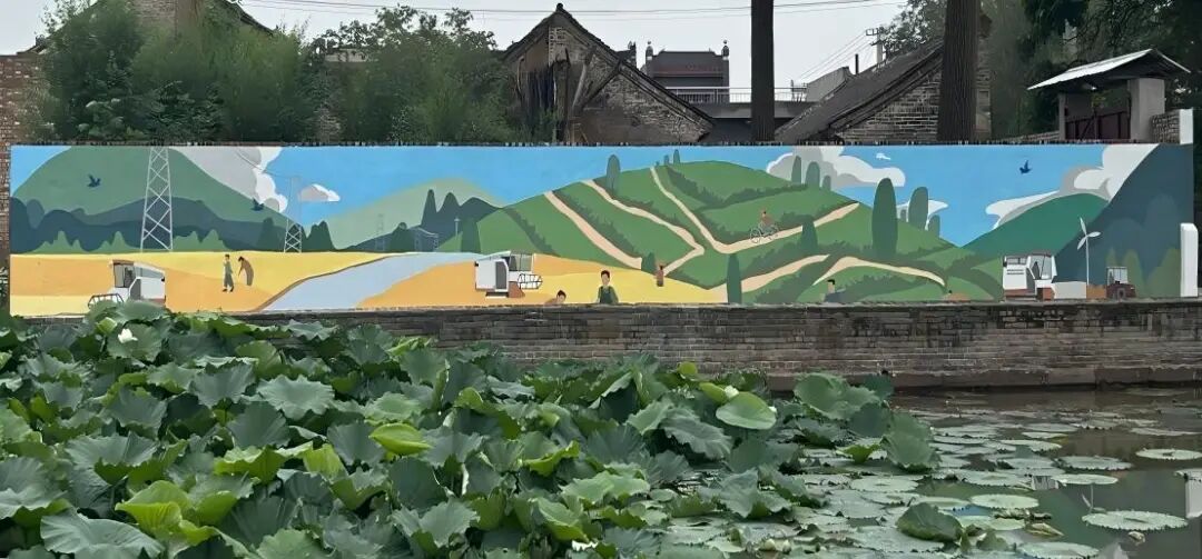 上午,城南村村支书徐东发带领村民代表齐聚墙绘前,进行现场交付。创作指导老师徐保胜向村支书徐东发及现场村民详细介绍了两幅墙绘的创作历程。从前期走访船工后人采集口述史料,到反复修改设计草图,再到连续多日的精心绘制,每一处细节都凝聚着师生们的心血。五天的精心创作,团队成员将炽热初心与专业才华倾注笔端,迎朝霞、伴星辰,以墙为纸,以史为媒。八路军船工队调度中心旧址上方的墙体,黄河水映衬着战士坚毅的眼神,方寸之间,历史风云跃然重现。村委对面,乡村振兴图景铺展着饱满希望:金黄的麦浪、崭新的民居、村民欢欣的身影,新时代乡村的富足气象跃然墙上。
