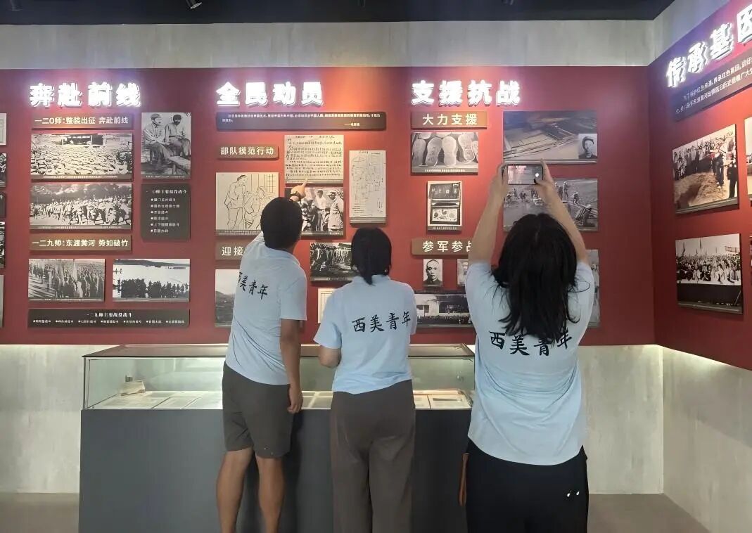 步入八路军东渡黄河纪念展馆,那些承载着烽火岁月的实物与影像,将大家带入那段波澜壮阔的革命征程。这场深刻的“行走的红色教育”,不仅是对历史足迹的追寻,更是一次党性的淬炼与升华。艺术之美与红色基因在这一天交织辉映,在实践队员心中碰撞出信仰的火花,也为这段实践之旅留下了难忘的印记。