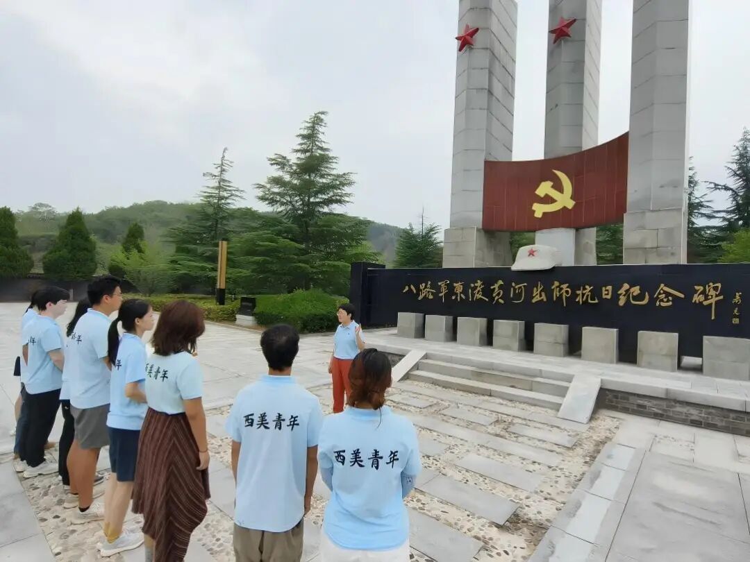 下午,实践队全体师生前往八路军东渡黄河出师抗日纪念地开展主题活动。在庄严肃穆的纪念碑前,高岩老师以“从革命精神看新时代青年使命”为主题,现场讲授了一堂生动的微党课。她结合墙绘中的场景,讲述了当年八路军将士克服重重困难渡河抗日的英勇事迹,并寄语同学们要传承红色基因,在艺术创作中践行初心使命,在新时代的征程中挺膺担当、砥砺奋斗。