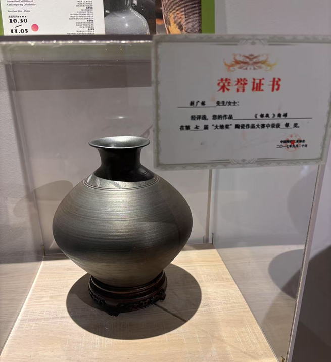这件金属光泽陶罐,以陶土的温厚本质披覆冷冽金属光泽,构成极致矛盾下的视觉统一,成为最具冲击力的展品。它如一枚火种,瞬间点燃了创作灵感:勇于“破界”——颠覆材料定式、融合古今语汇、深挖“表皮”潜能。它昭示:最高明的艺术,常诞生于匠心独运的“重塑”,在深刻的统一中迸发出撼人力量。