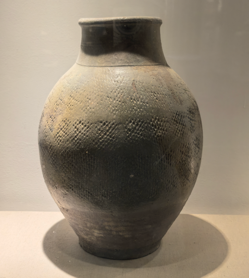 陕西安康紫阳富硒茶陶博物馆藏米字陶罐,是展现当地茶陶文化精髓的重要器物。此罐通体线条古朴流畅,器型端庄稳重,胎质细密坚实,经岁月沉淀后更显温润质感,既保留了实用器皿的功能性,又融入了独特的艺术表达。最引人注目的是器身装饰的“米”字纹饰,线条简练却极具张力,以对称的几何形态勾勒出韵律之美。