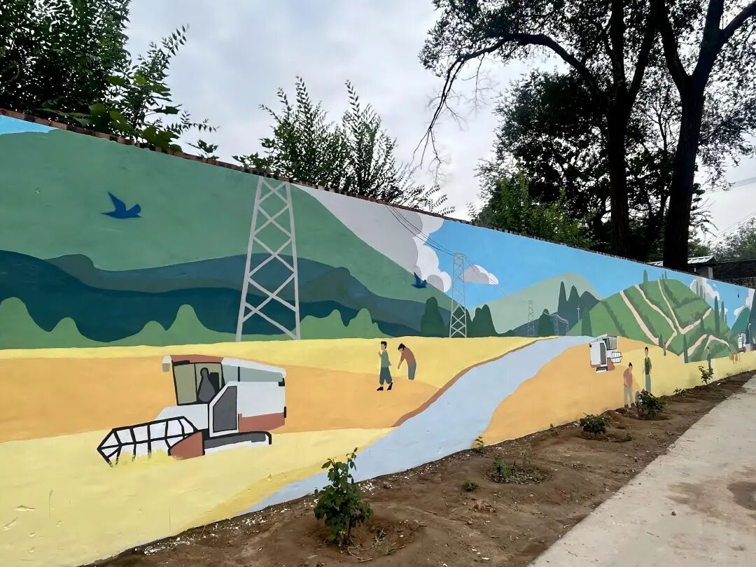 清晨,阳光洒在城南村的墙面上,实践队员们早早来到墙绘现场,开始对前一天的作品进行细节完善。有的队员负责人物的表情刻画,让画中的村民更加亲切自然,有的队员负责远景山水更丰富的层次感,还有的队员负责修补墙绘边缘的瑕疵,确保每一条线条都流畅自然,让整幅墙绘看起来更加精致完美。路过的村民纷纷驻足,时不时给实践队员们讲述着画中场景背后的村史故事。