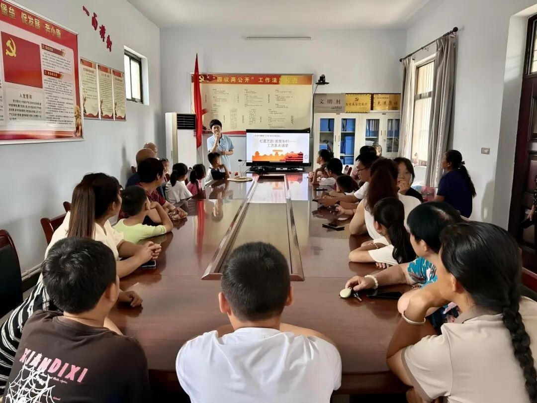 七月的城南村,艺术的种子正在生根发芽。“红星艺韵・美育乡村”党员先锋实践队的队员们早早投入到工作中,上午对前期绘制的墙绘进行细节完善,让画作更加生动鲜活;下午则为村民和孩子们带来了一场别开生面的非遗文化活动。非遗文化讲堂、工艺美术讲堂相继开讲,从陕西非遗文化到工艺美术专业展示,再到妙趣横生的漂漆扇制作体验,这场融知识性与趣味性于一体的美育活动,让传统技艺在互动中焕发新生。