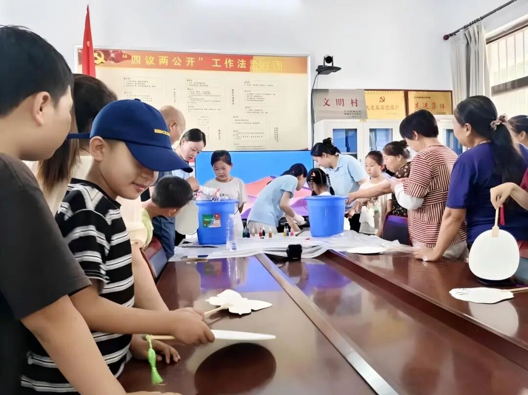 一天的活动充实而精彩,非遗文化讲堂和工艺美术讲堂为城南村的村民和孩子们带来了丰富的知识,漂漆扇制作体验则让大家亲身体验了艺术创作的快乐。实践队用实际行动将艺术与文化带到乡村,让更多人感受到艺术的魅力,也为乡村的文化生活增添了一抹亮丽的色彩。相信这份对艺术的热爱与追求,会在孩子们心中种下种子,在未来绽放出绚丽的花朵。