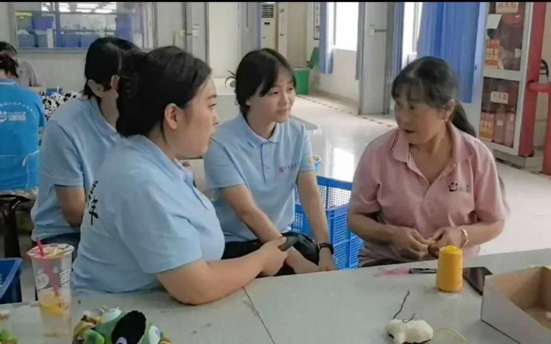 实践队特别采访了工厂十余位资深员工,了解到这家毛绒玩具厂已在当地扎根8年。通过与工人们的深入交流,同学们收获了许多感人故事: