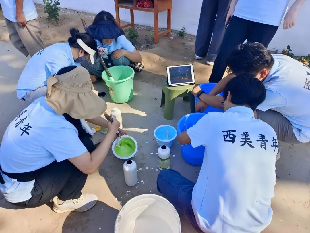为纪念中国人民抗日战争暨世界反法西斯战争胜利80周年,庆祝中国共产党成立104周年,西安美术学院工艺美术系“红星艺韵·美育乡村”党员先锋实践队来到韩城芝川镇城南村开展实践活动的第二天,队员们以画笔再现东渡壮举,用色彩描绘乡村振兴,并通过访谈重温波澜壮阔的历史,聆听先辈们的感人故事。