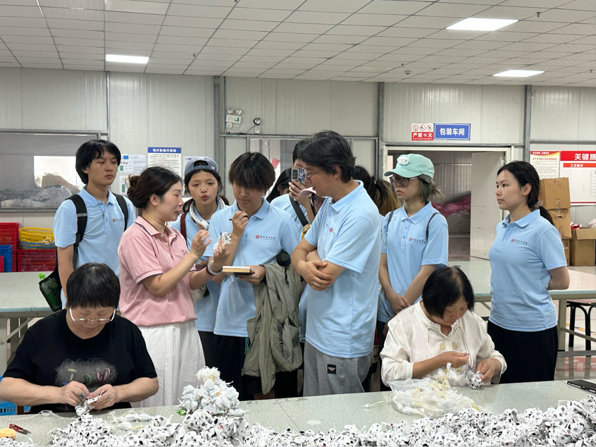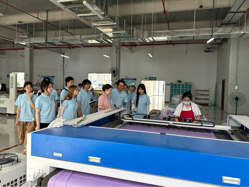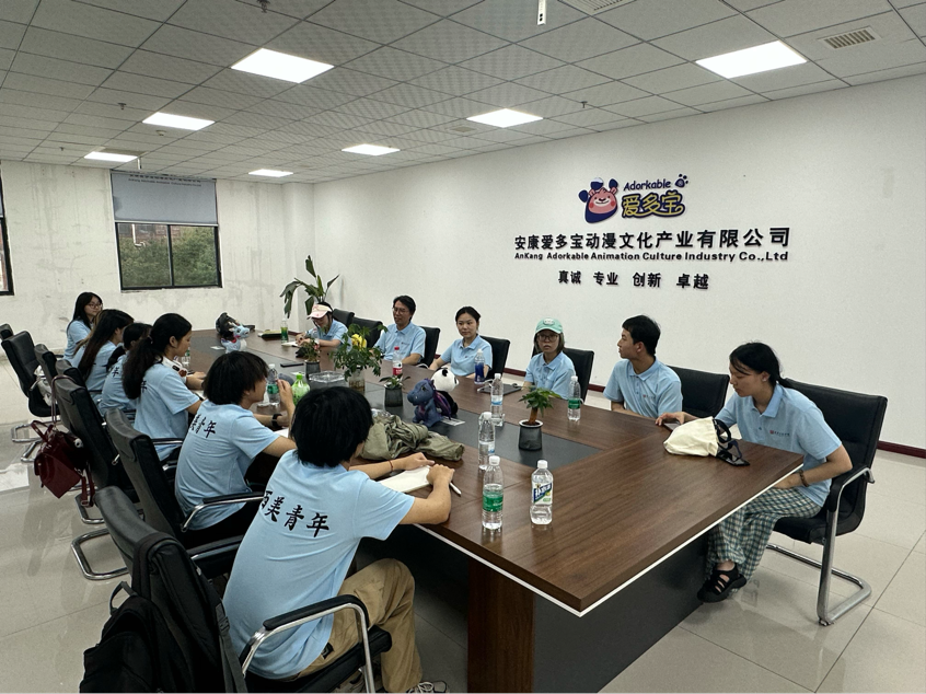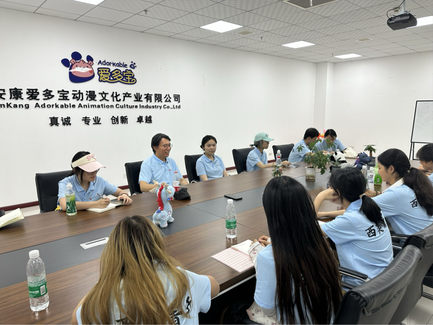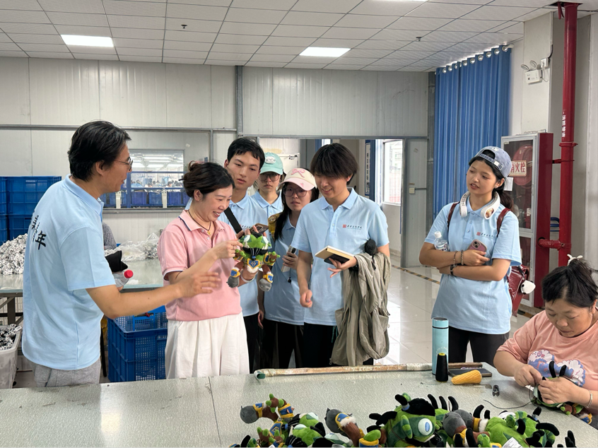 7月6日下午,实践之旅深入产业一线。团队首站走进安康爱多宝动漫文化有限公司(西安美术学院产学研基地)。在工厂负责人的带领下,大家系统参观了毛绒玩具从设计、裁剪、缝纫、填充到质检包装的五个核心制作流程。走进琳琅满目的样品陈列间,各种造型新颖、工艺精湛的毛绒玩具让大家直观感受到了当地特色产业的活力与潜力。