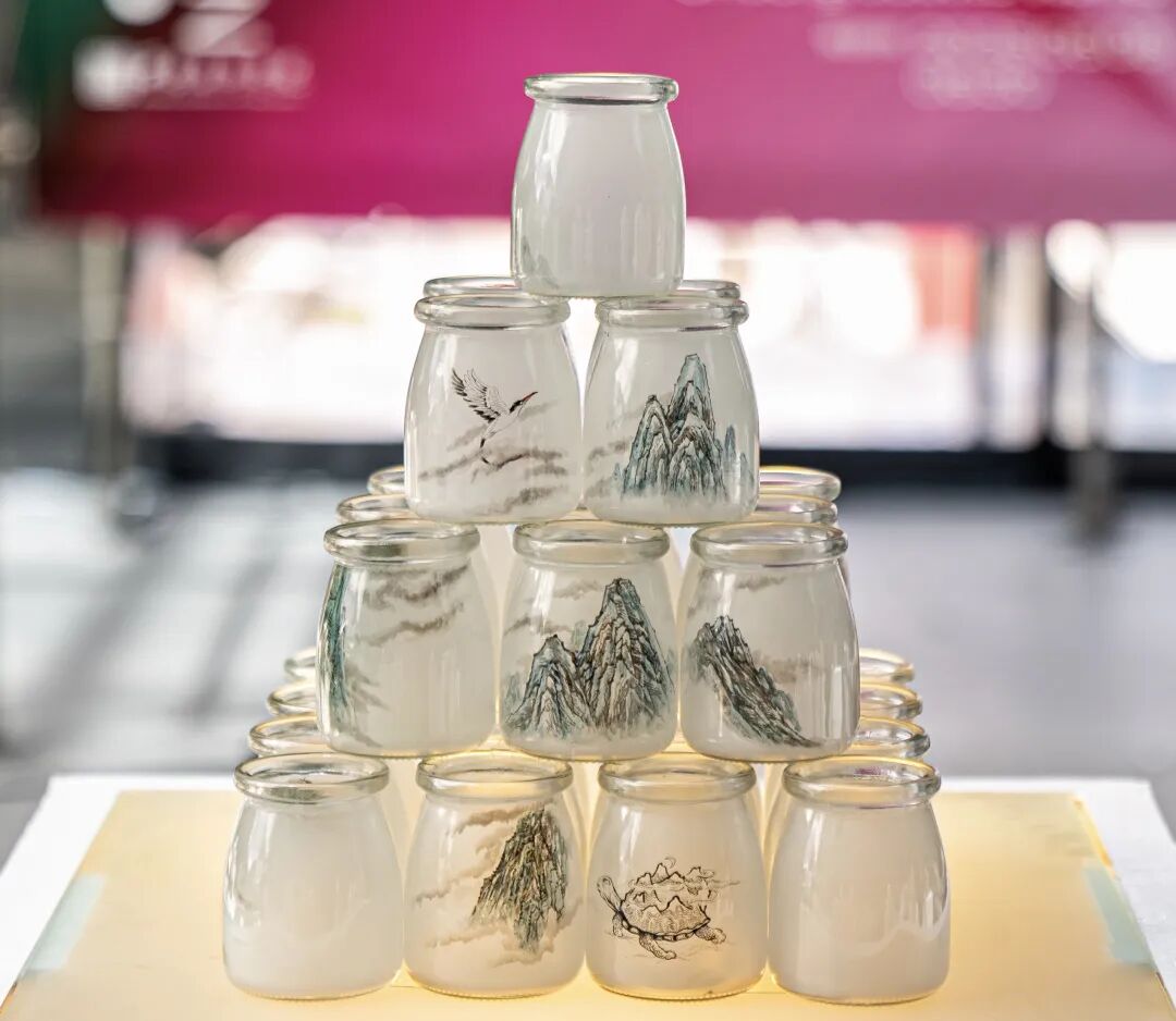 作品阐述:这组作品在形式上采用了金字塔式的摆放方式,不仅增强了视觉冲击力,更赋予了作品一种庄重、稳定的秩序感。每一个玻璃瓶都像是一个独立的艺术单元,而整体又构成了一个和谐统一的整体,寓意着个体与集体、局部与整体的关系希望在展示玻璃内画艺术的同时,也能给观者带来一种新颖的视觉体验,能让更多人感受到玻璃内画的独特魅力。
