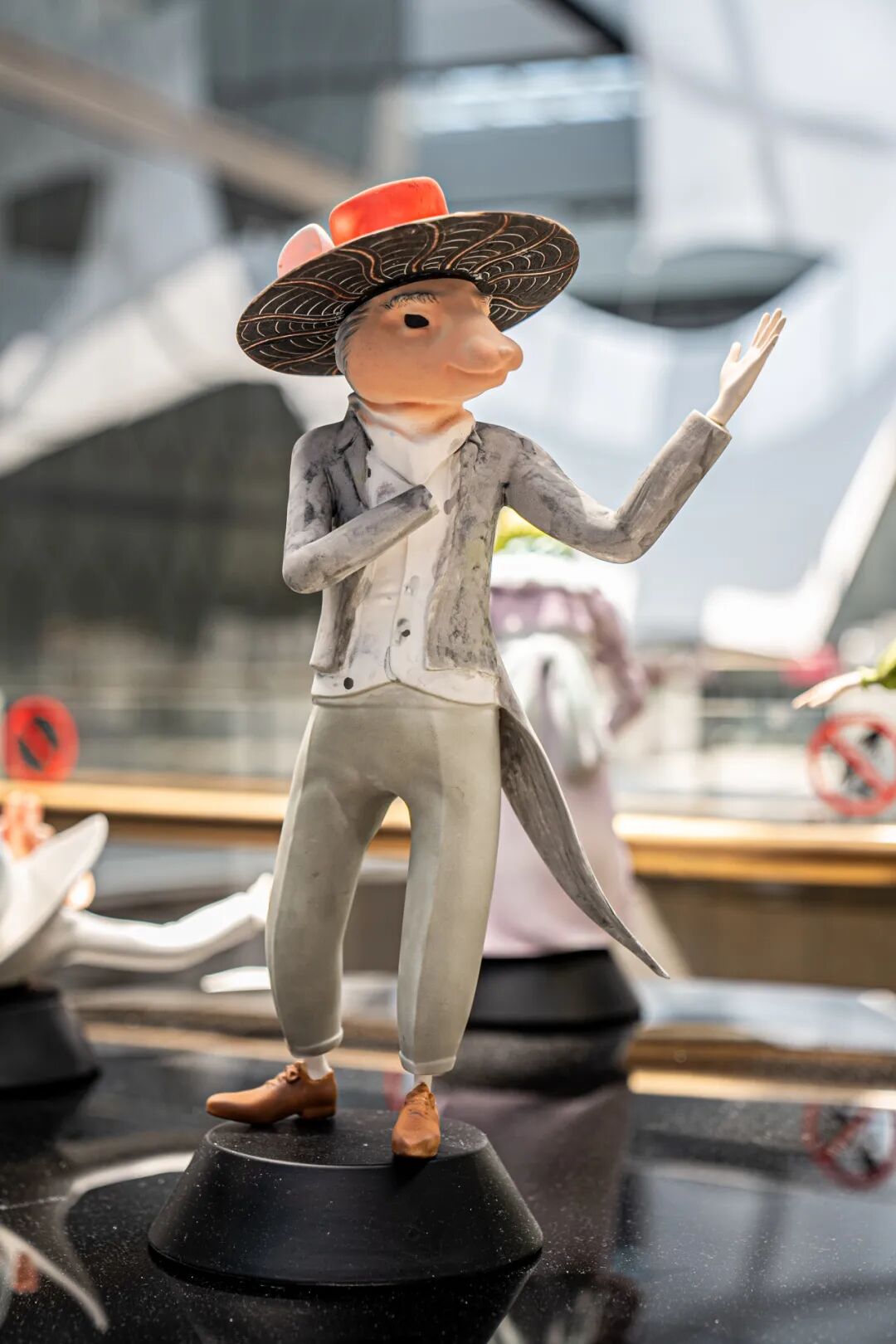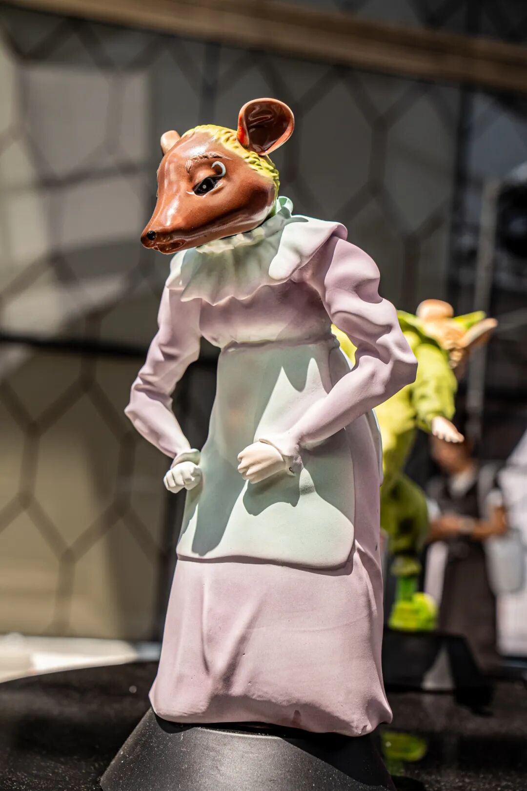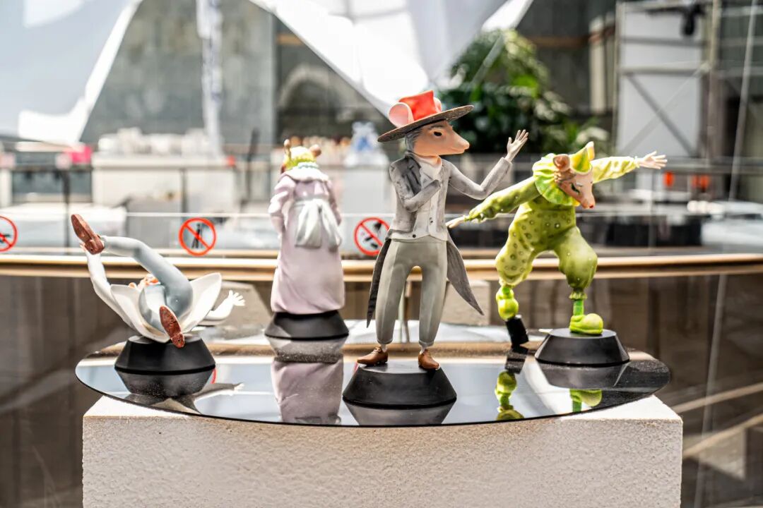 作品阐述:本作以五只拟人化的陶瓷老鼠为主体,分别扮演“母亲”“名媛”“小提琴家”“小丑”等社会角色,围圈而立,从静止状态渐趋癫狂。角色服饰与动作的递进构成了一场象征性的社会寓言。老鼠既是被边缘化的生物,也是在欲望体系中扮演角色的人类镜像。作品通过这种双重隐喻揭示了个体在现代社会中如何在贪婪、伪饰与集体癫狂中逐渐丧失自我。封闭的环形结构象征着一种无解的循环:狂欢与异化共生,欲望与毁灭同在。