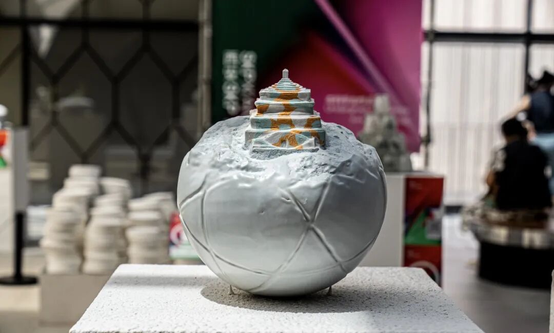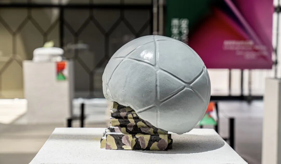 作品阐述:足球运动不仅是一项体育活动,更是社会文化生活的重要组成部分。该作品将现代足球的形态与西安古建筑相结合,以陶瓷的材料语言模拟考古挖掘的手法,使古建筑从足球中缓缓显现。表达古建筑蕴含的厚重历史文化与足球文化的结合,不仅是文化、历史与现代生活的合理交融,更重要的是体现了人类文明在时间和空间上的连续性和创新性。
