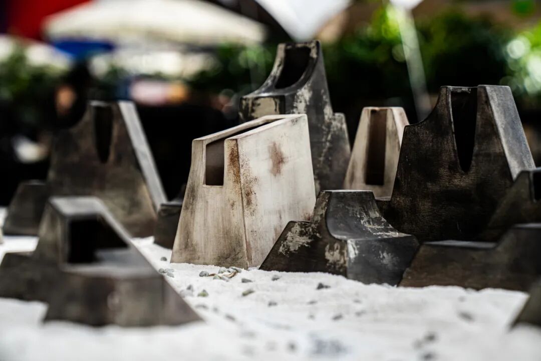 作品阐述:作品聚焦中国北方石刻艺术瑰宝—拴马桩,撷取其历经风霜侵蚀后形成的独特风化肌理,并将其与承载千年书卷文明的龙鳞装之精妙结构与层叠韵律相融合。将拴马桩的风化肌理与龙鳞装的层叠韵律以创新形态进行再现与重构,这不仅是对传统艺术形式的传承与创新,更是以艺术创作回应文化遗产保护的时代命题。在保留文物神韵的同时,探索让文化遗产在当代语境下焕发新生的可能,让更多人感受到对文物遗产消亡的思考,从而唤起社会对文化遗产保护的重视,共同守护人类文明的精神家园。