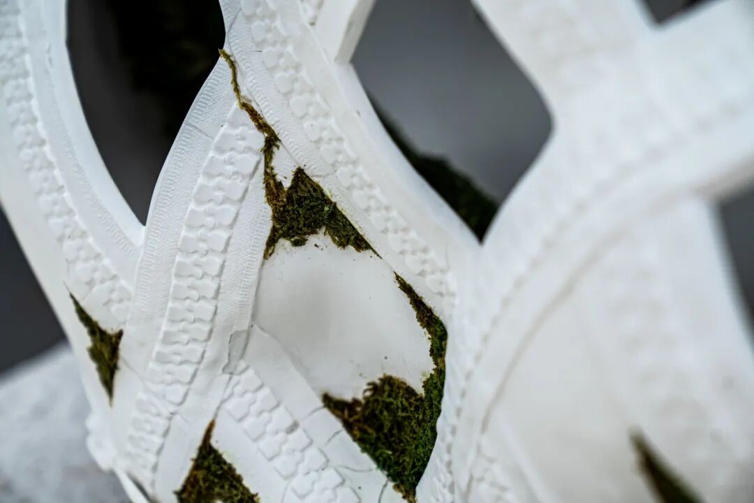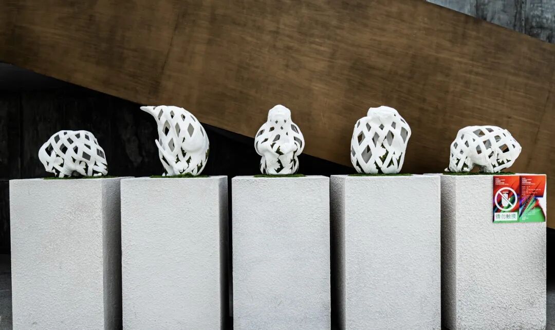 作品阐述:这组设计以秦岭四宝为原型,通过拉链编织成网的形态探讨人与自然的辩证关系。拉链的开合象征人类对自然的选择——是束缚,亦是保护。作品上半部分以镂空拉链网构成脆弱的结构,隐喻人类支配自然的虚妄。下半部分保留动物形态并覆盖苔藓,表现出没有人类干预下自然生命力的坚韧。虚实对比形成压迫与希望的视觉张力,传递出共生共荣的生态理念。在传统陶艺中融入现代表现语言,通过符号化的拉链网格与动物的结合,构建人工与自然的对话。既是对濒危物种的凝视,也是对人类中心主义的反思——我们既是自然的囚徒,也是它的守护者。试图将这选择留给观看者,唤起观者对和谐共生可能性的想象。