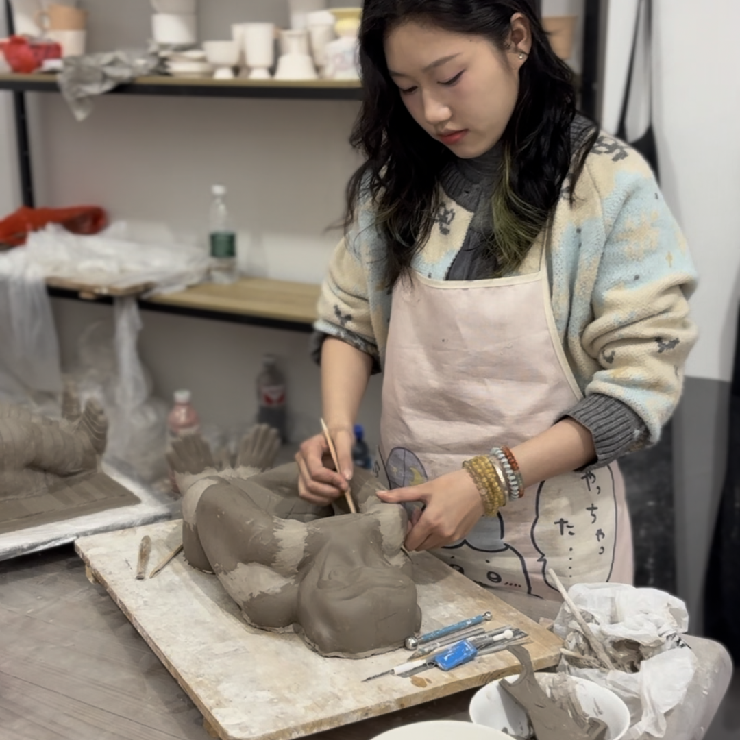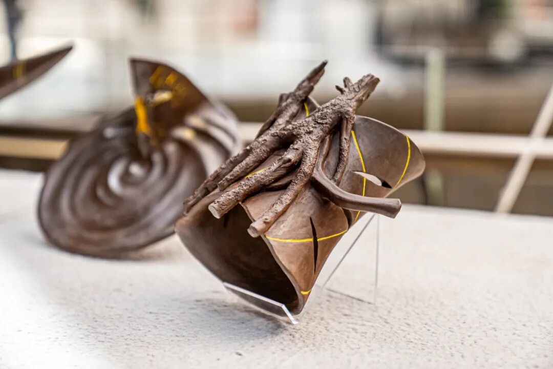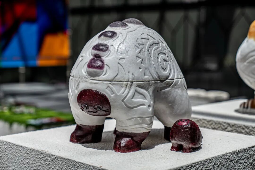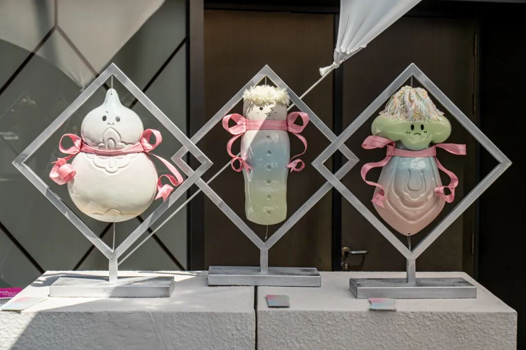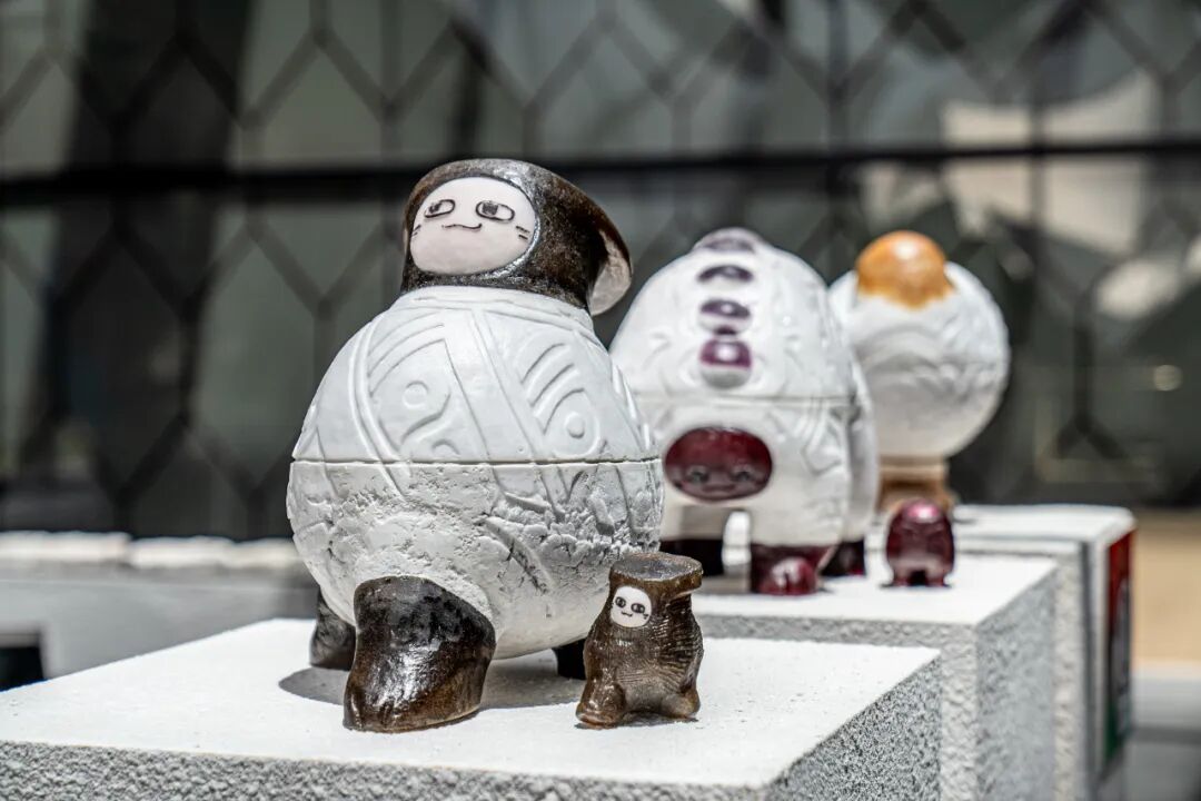 作品阐述:本作品是从陶鬲与红薯中汲取灵感而塑造的生物形象。“民以食为天”,红薯实在美味,炊具陶鬲的造型实在可爱,二者令我着迷,于是将其结合,创作出这三只小生物。人间烟火气与器物之美伴我度过了四年大学时光,望以传递这份喜爱。