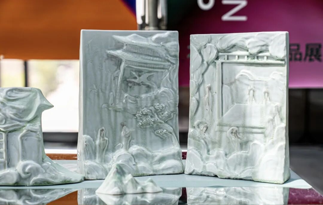 作品阐述:世间万物皆有其声,陶瓷作为一种古老而富有文化底蕴的材料,其“声如磬”的特点如同穿越千年的悠扬旋律在岁月长河中回荡。本作品以中国传统乐器“磬”为原型,融合暗八仙纹样进行再设计,使其成为一系列可敲击发声的互动性作品,在探索陶瓷乐器发声原理之余,更旨在构建人与陶瓷作品间独特的互动体验。“击磬”谐音“吉庆”,愿观者在叩响瓷磬之际,感受这份穿越时空的美好祝福。