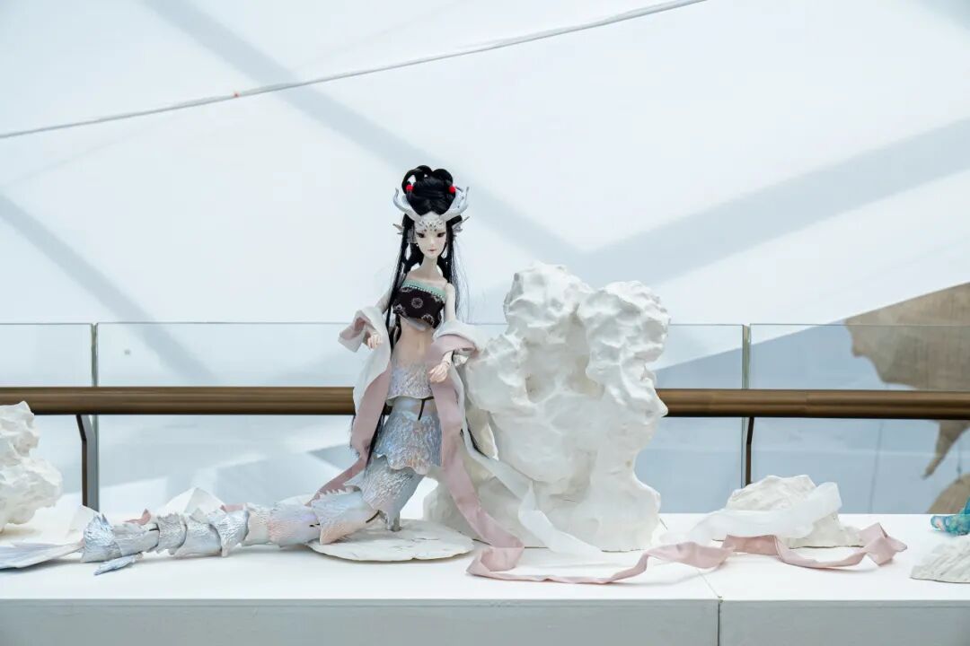 作品阐述:基于《聊斋志异》中女性精怪罗刹海市篇-龙女、香玉篇-耐冬花神绛雪、放蝶篇-蝶女元素创作的陶瓷球形关节人偶,"漱玉"既指才女的精神淬炼,又暗含"漱石枕流"的叛逆姿态,"归真"则构建从礼教束缚返回本真存在的救赎闭环。在超自然女性视角下以超脱的姿态寻求自我救赎与精神自由。作品以传统瓷器与国风BJD人偶结合,探寻传统工艺活化与当代设计赋能,使其成为链接传统与现代的载体,拓展陶瓷的视觉表现力与叙事可能。