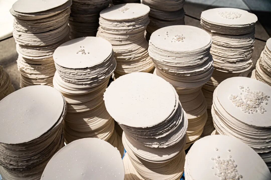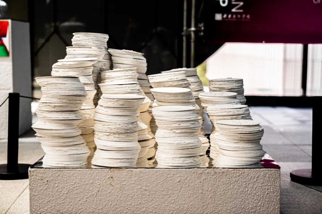 作品阐述:本件作品以数千片的圆片堆叠的形式来呈现,通过层层堆叠的圆片来模拟生物个体,它们看似无序却又有着内在的聚集趋势,仿佛都在向着最高最多群体靠拢,作者借用了陶瓷材质的脆弱性与个体、秩序与失控之间的张力,隐喻现代社会中生物趋同行为背后的隐形引力场,引发对权力结构、精神归附和存在异化的哲学思辨。