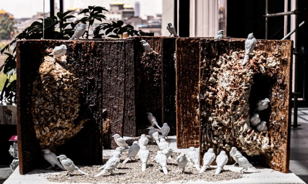 作品阐述:高墙之外,还是高墙,但振翅的姿态本身已是自由的宣言。