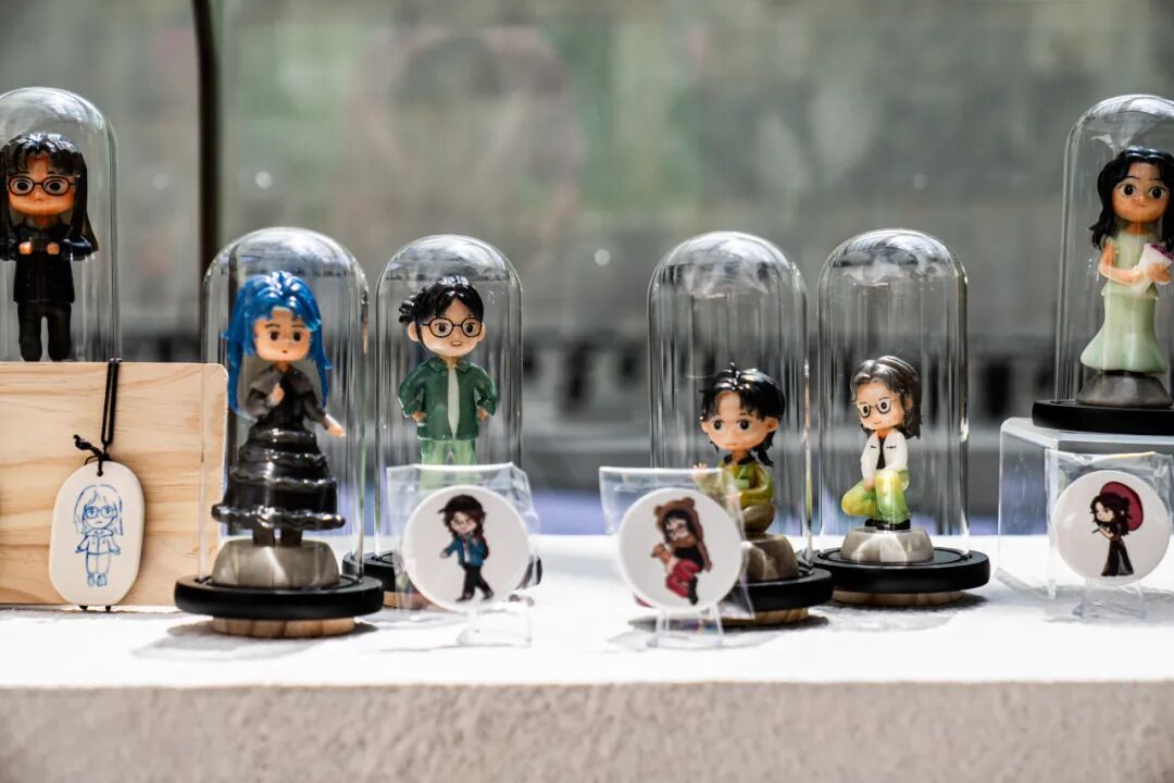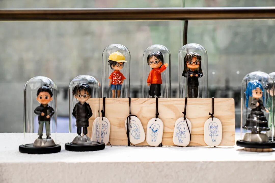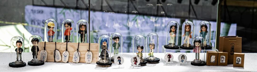 作品阐述:该作品主在展示人物形象多样性,每个角色都被精心雕刻和涂装,各有独特的个性和风格。它们被整齐地排列在展示架上,有些穿着日常便服,有些则穿着正式或特殊的服饰,包装盒和手提袋,显然是手办的包装,上面的图标也是对学校初始的美好印象,它们对于作者不仅是独一无二的珍品,也是动漫爱好者表达对角色喜爱的方式。更是作者大学回忆的色彩与时光,无论是作为展示还是收藏,它们充满了艺术价值和情感意义。