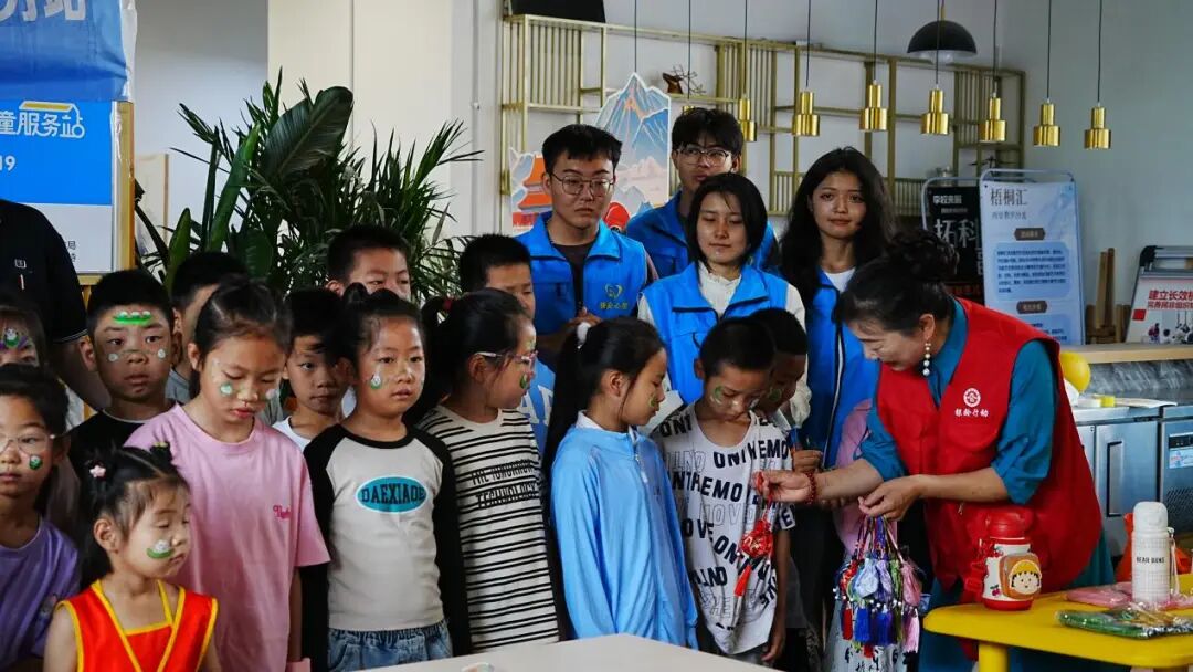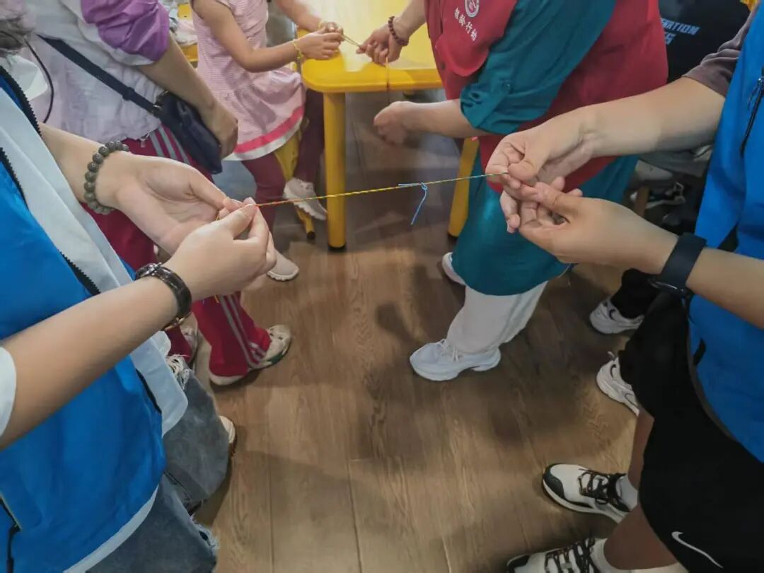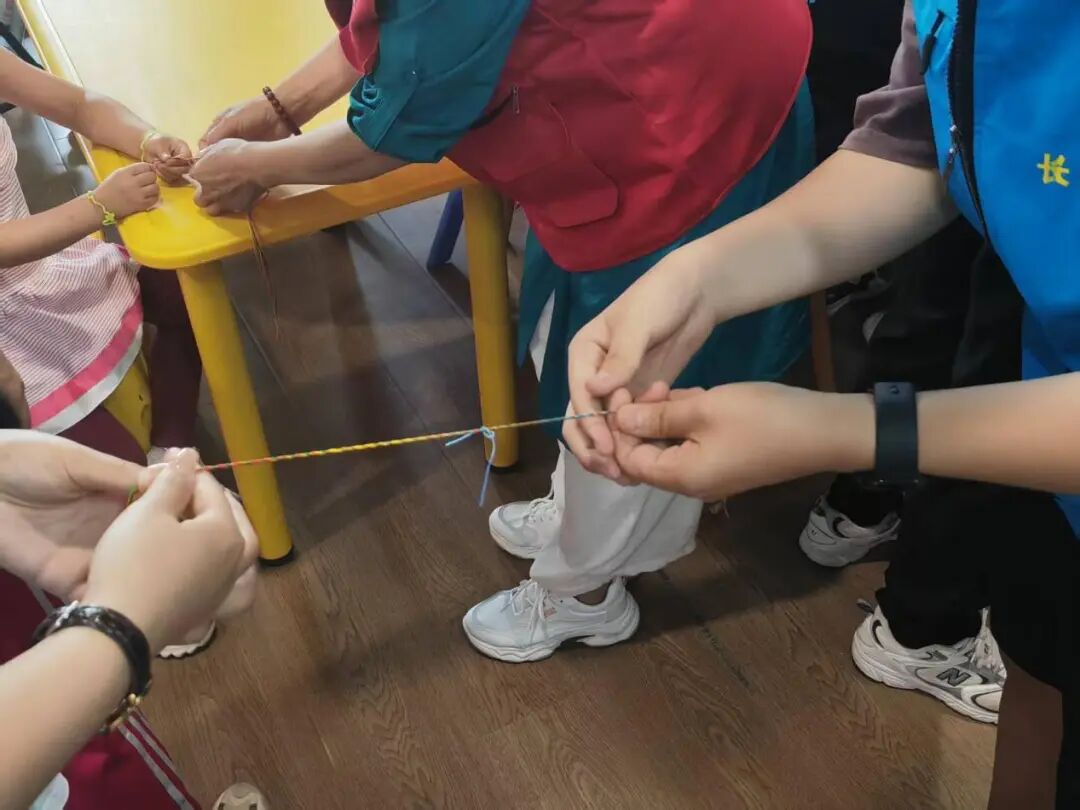 我系志愿者们积极参与其中,利用所学的工艺美术知识,为孩子们讲解五彩绳编的历史渊源和文化内涵,让孩子们在动手实践的同时,更加深入地了解这一传统技艺。在志愿者们的耐心指导下,孩子们的指尖翻飞,仅20分钟,一条条承载祈福寓意的吉祥手链便跃然腕间。这些五彩丝线,不仅系住了千年安康祝愿,更编织出了孩子们对传统文化的热爱与传承。