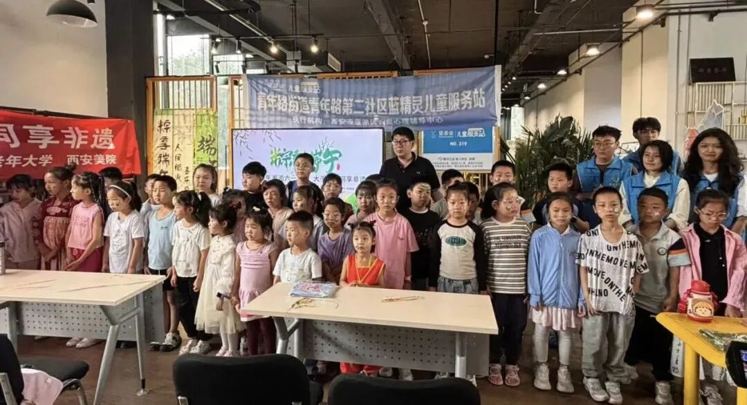 在六一儿童节与端午佳节交织的温情时刻,5月31日,一场沉浸式的文化嘉年华在西安市莲湖区长安心理辅导中心热烈展开。本次活动由西安市莲湖区长安心理辅导中心主办,携手工艺美术系志愿者站、浦发银行凯旋莲湖公馆社区支行、西安老年大学“乐龄有为”志愿服务队,并特邀非遗传承人、国画老师与彩绘艺术家共同打造。西安美术学院工艺美术系的志愿者们作为“时代践行者”,以专业为笔、以热情为墨,在这场童心与非遗碰撞的盛宴中,留下了独属于工艺人的艺术印记。
