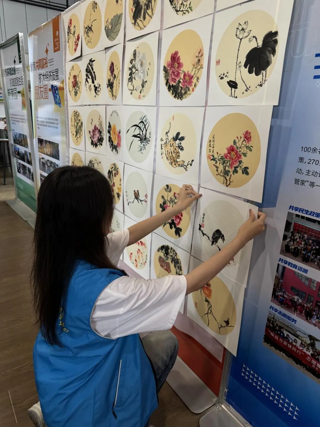 我系志愿者们一同沉浸在墨韵之美中,他们凭借专业的艺术鉴赏能力,为孩子们解读书画作品的笔法、构图和意境,引导孩子们感受艺术的魅力。孩子们的童眸中闪烁着对艺术的好奇与向往,艺术传承的种子也在他们心田悄然播撒。工艺学子与大家一起在书画的世界里,共同领略传统文化的博大精深。这种跨越年龄的艺术共鸣,恰是工艺美术“技道合一”的最佳注脚。